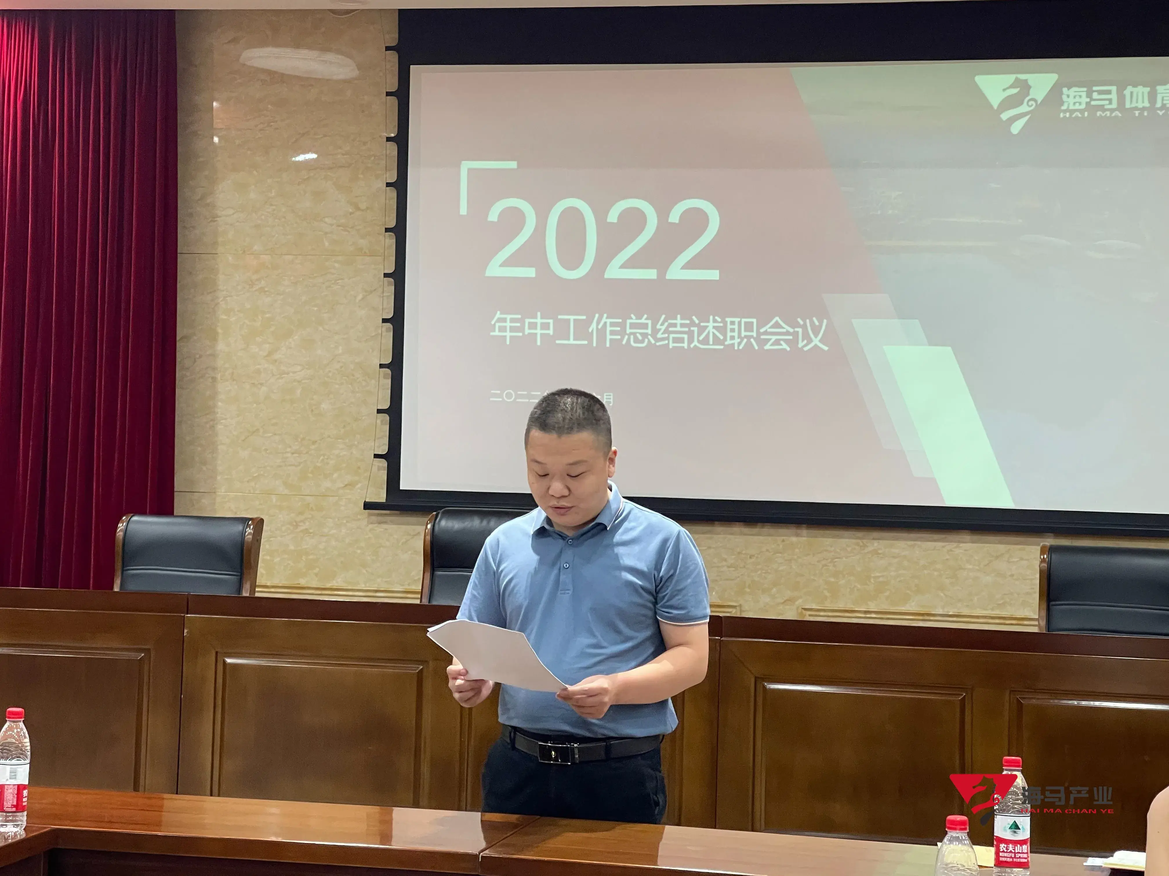 2022年6月29日下午,333体育文化产业集团在山东省体育中心二楼会议室召开年中工作总结述职会议,会议对上半年工作成果进行了总结汇报,并就下半年重点工作进行部署。总经理王海民出席了本次会议。会议由综合管理部负责人王永健主持。